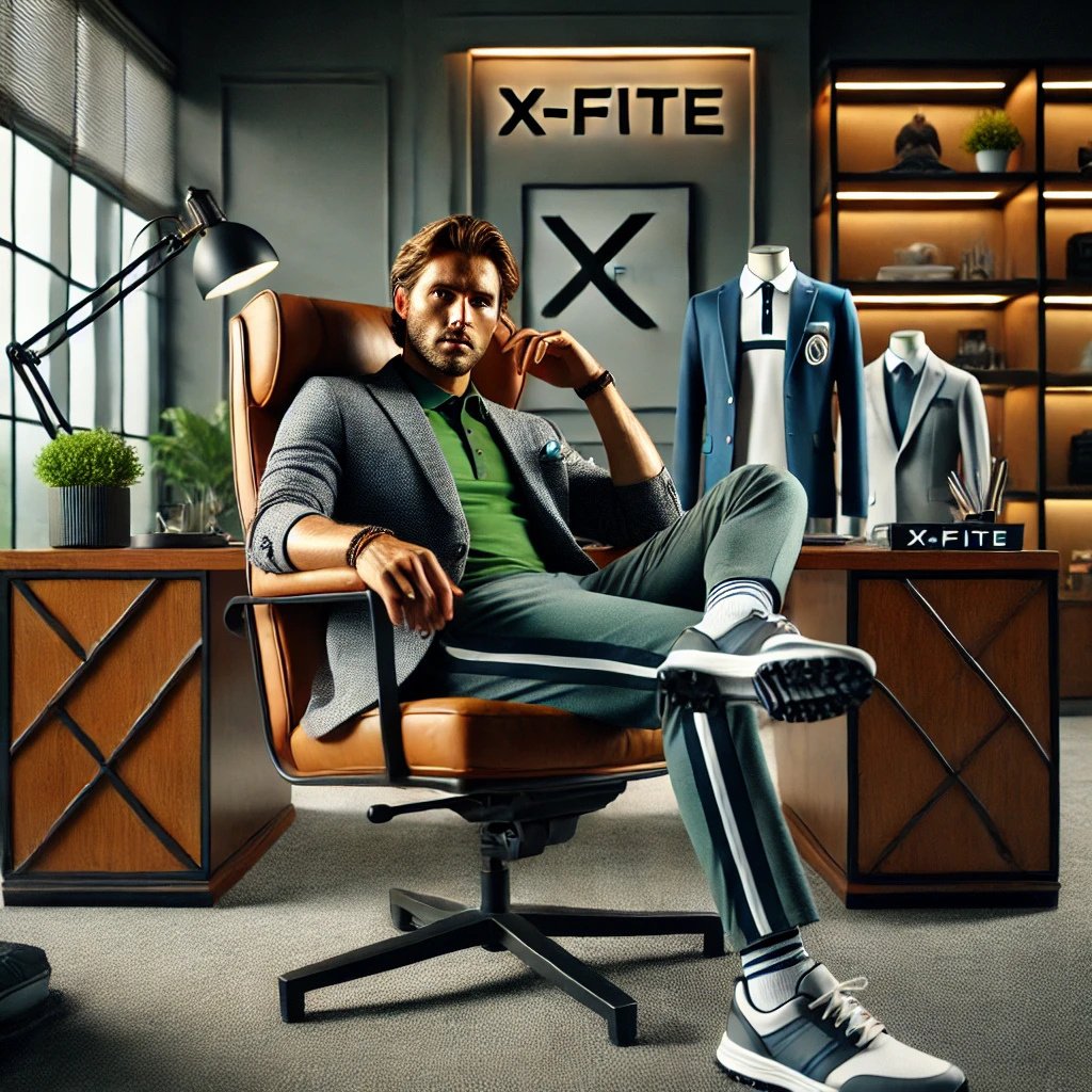 X-FITE: A dedicated section highlighting the cross-over golf and sportswear brand, its global market vision, and key product lines.
