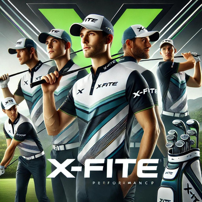 X-FITE: A dedicated section highlighting the cross-over golf and sportswear brand, its global market vision, and key product lines.